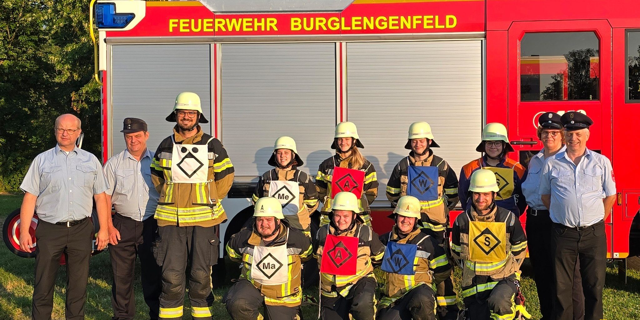 Die Prüfung fand am Abend des 2. August am Volksfestplatz statt. Diese beginnt zunächst mit einem Fragebogen für den Gruppenführer, ehe es an die Knotenkunde geht. Nach dieser „Aufwärmübung“ ging es dann weiter mit dem Löschaufbau, der innerhalb von lediglich 3 Minuten und 10 Sekunden vorgenommen werden muss. Hierbei achteten die drei Schiedsrichter beispielsweise auf das korrekte truppweise Vorgehen, die richtige Wiedergabe der Befehle und Einhaltung der Markierungen. Anschließend folgte ein weiterer Praxisteil, nämlich dem Kuppeln einer Saugleitung, ebenfalls unter Zeitlimit. Abgeschlossen wird die Prüfung mit der Trockensaugprobe, die zeigt, ob richtig gekuppelt wurde und die Leitung dicht ist. Die Gruppe konnte die Prüfung mit Erfolg abschließen. Am Gerätehaus überreichte Kommandant Michael Prehn den Absolventen ihr Abzeichen, ehe der Abend mit einem gemeinsamen Essen abgerundet wurde.